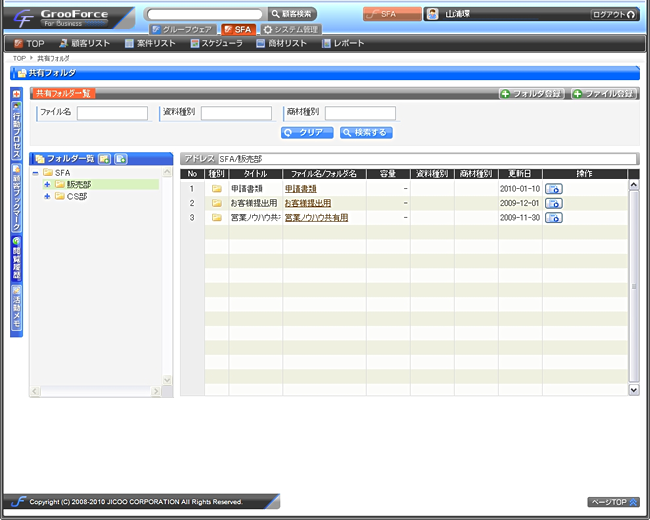 - ・ファイルは「案件」【商材」に紐付けることができ、検索の利便性が図られています。